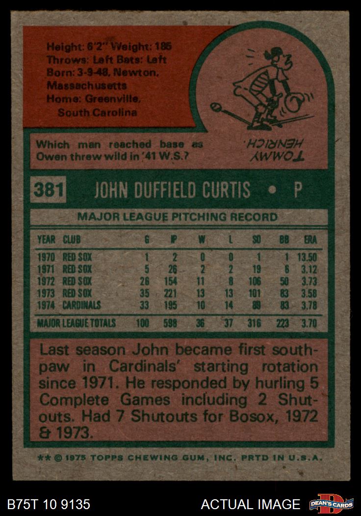 1975 Topps #381 John Curtis