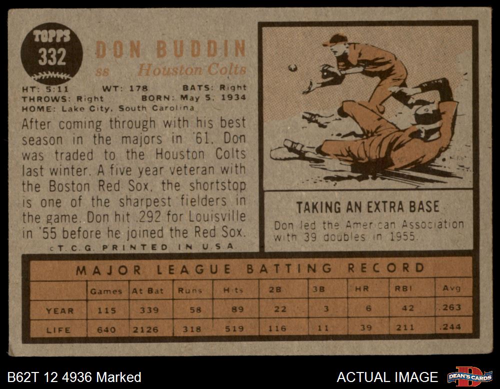 1962 Topps #332 Don Buddin 1.5 - FAIR