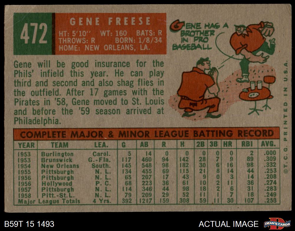 1959 Topps #472 Gene Freese 2 - GOOD