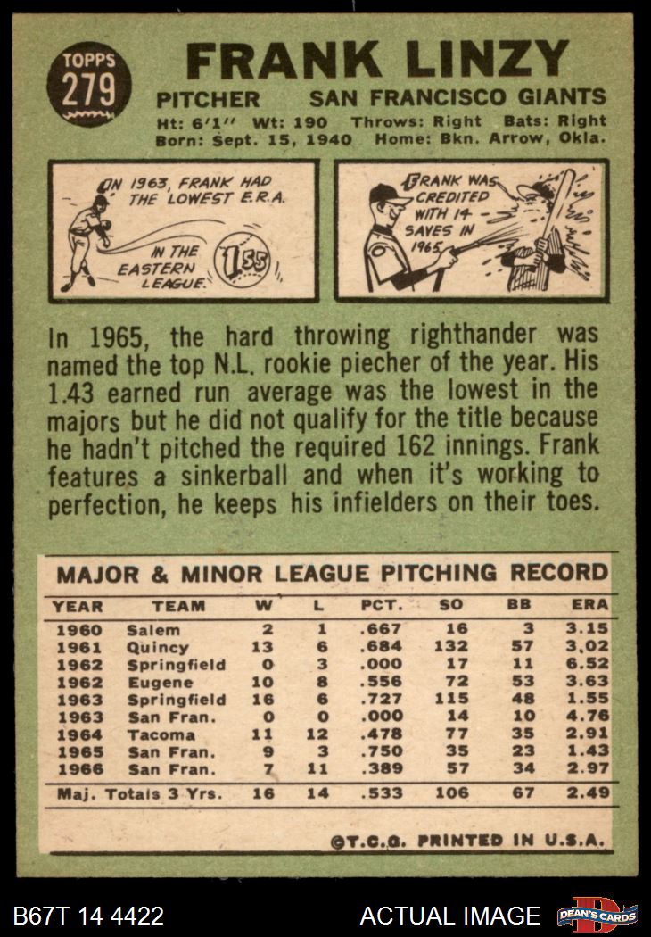 1967 Topps #279 Frank Linzy