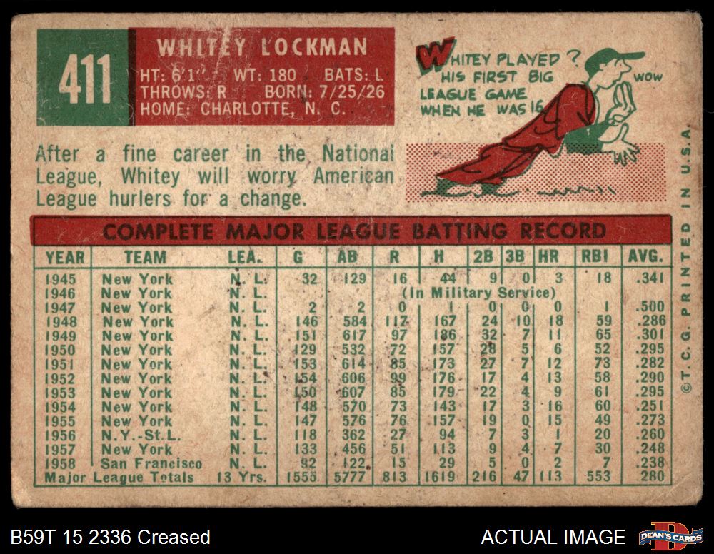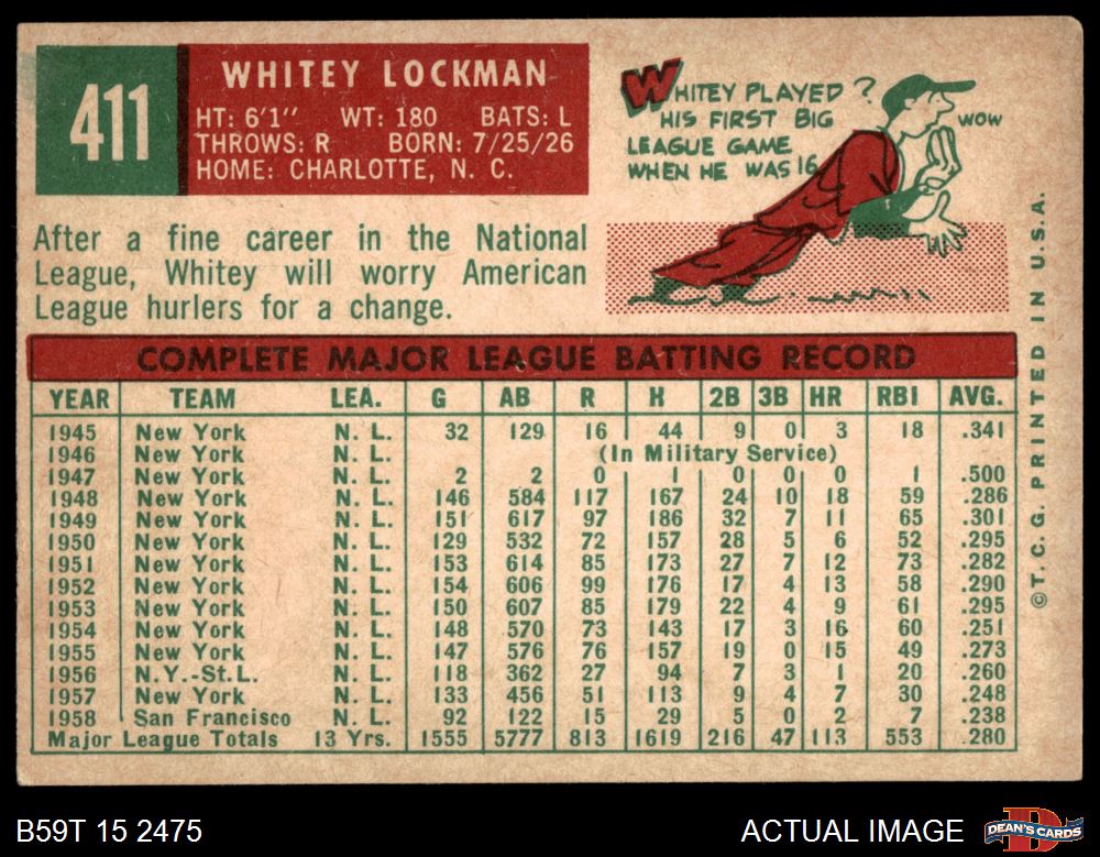 1959 Topps #411 Whitey Lockman