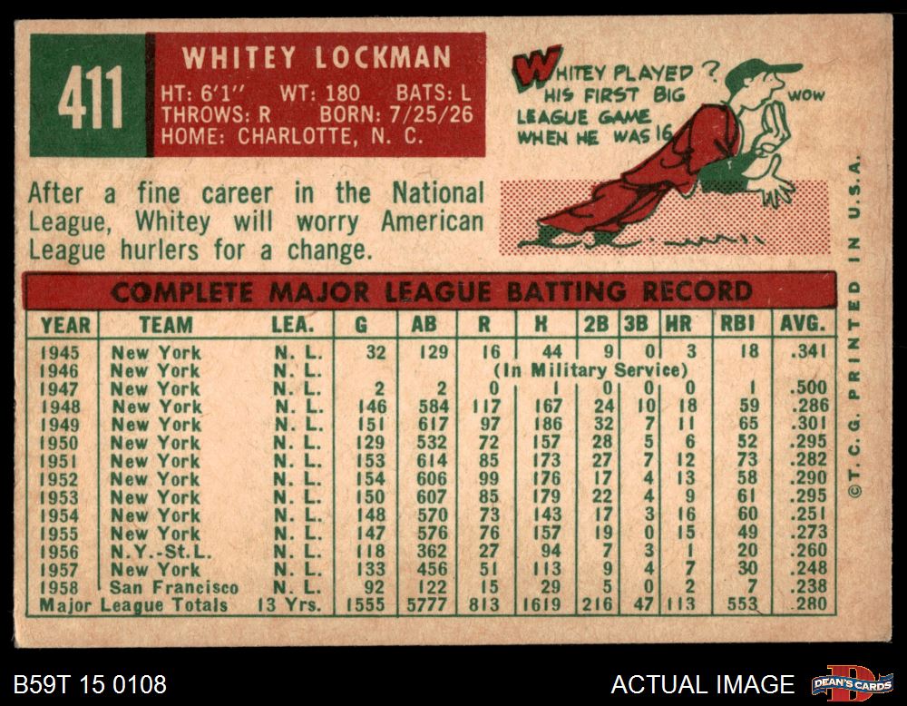 1959 Topps #411 Whitey Lockman 4 - VG/EX