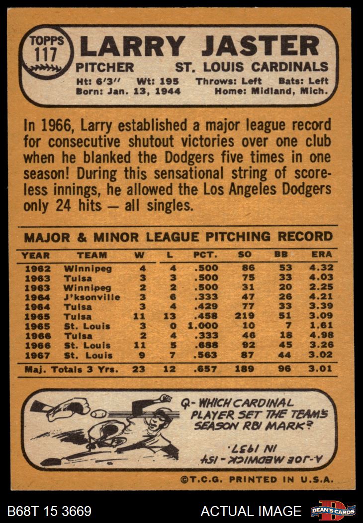 1968 Topps #117 A Larry Jaster