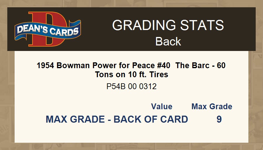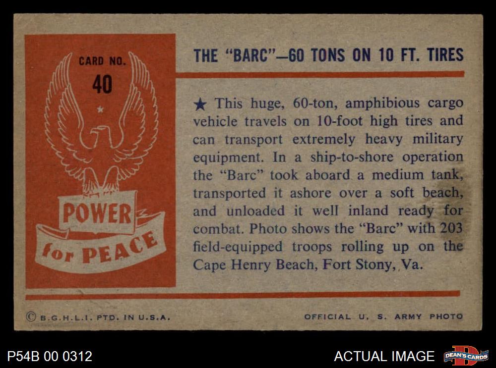 1954 Bowman Power for Peace #40 The Barc - 60 Tons on 10 ft. Tires 4 - VG/EX