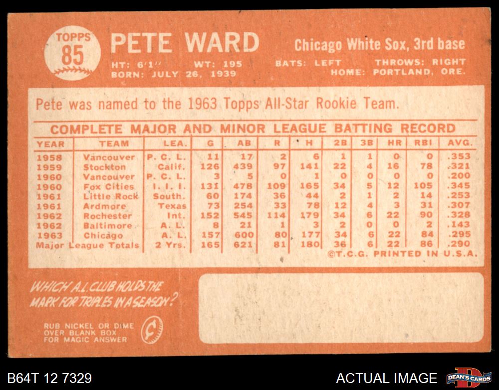 1964 Topps #85 Pete Ward 3 - VG