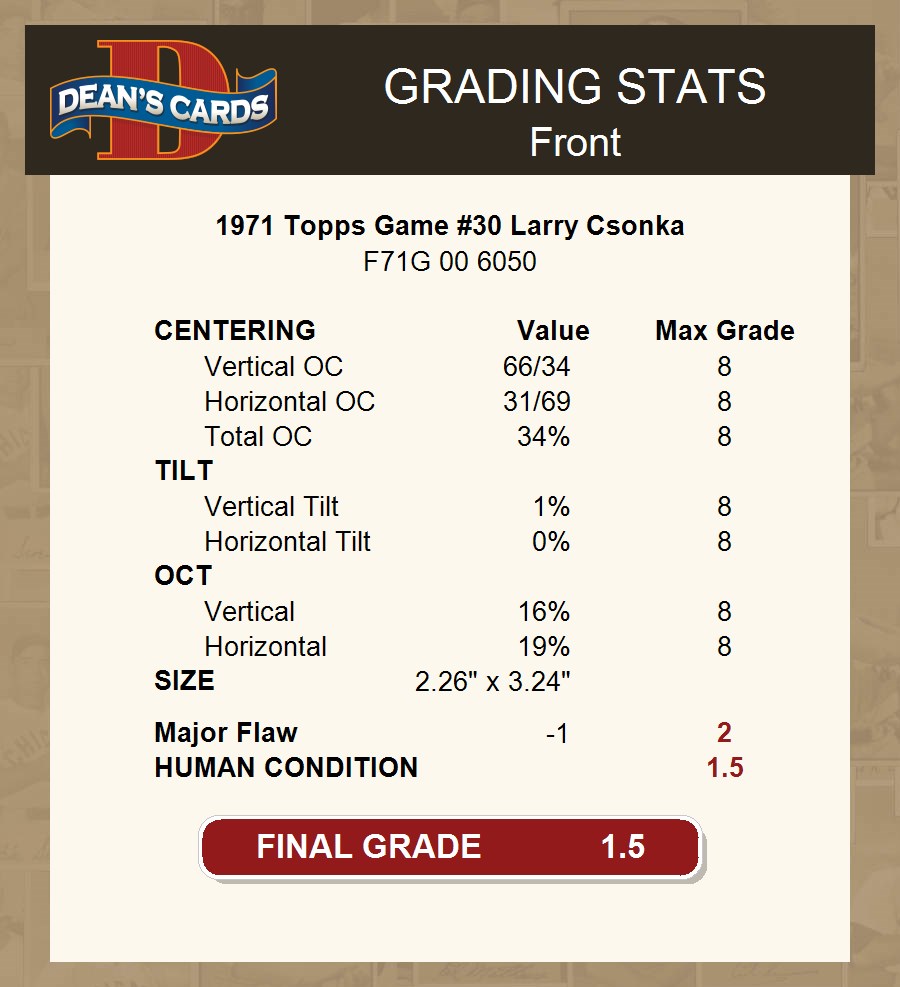 1971 Topps Game #30 Larry Csonka 1.5 - FAIR