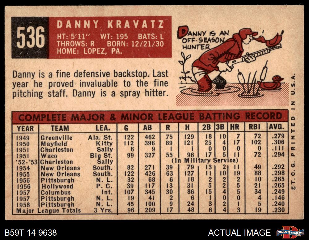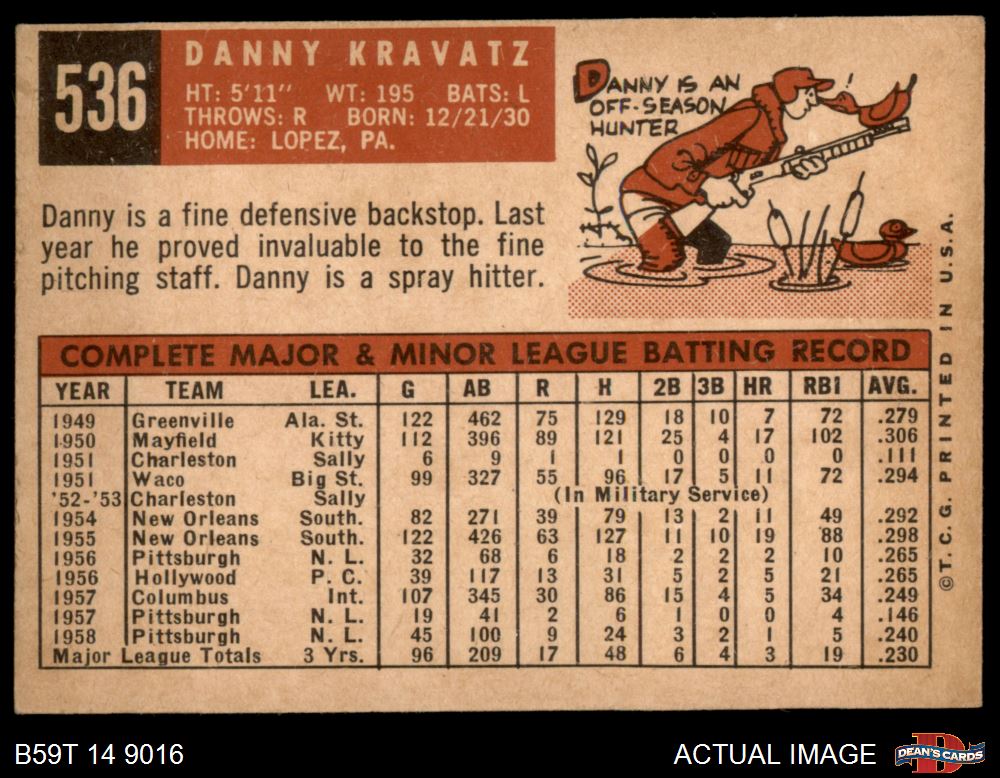1959 Topps #536 Danny Kravitz