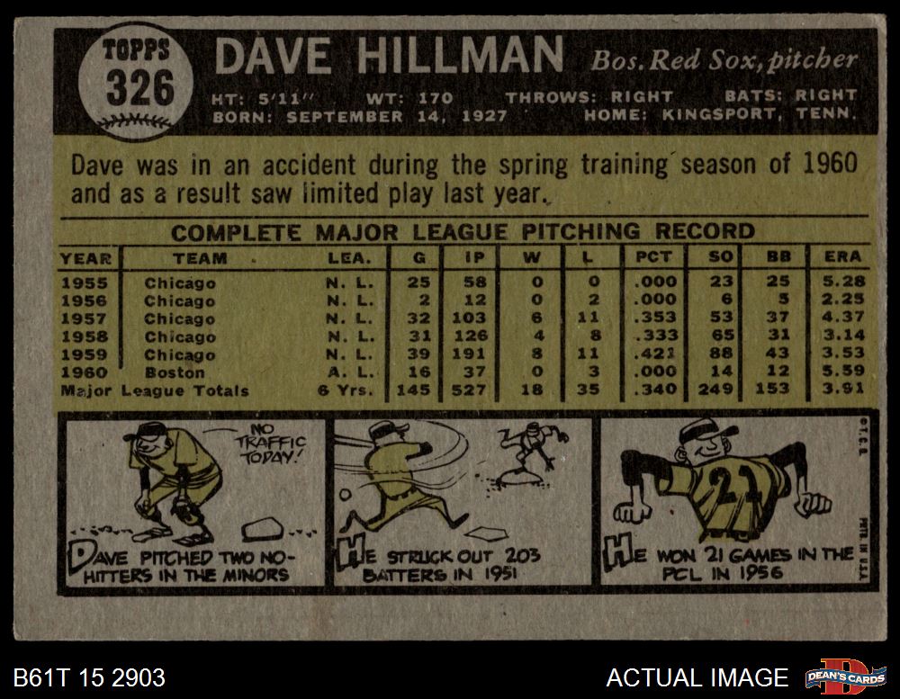 1961 Topps #326 Dave Hillman