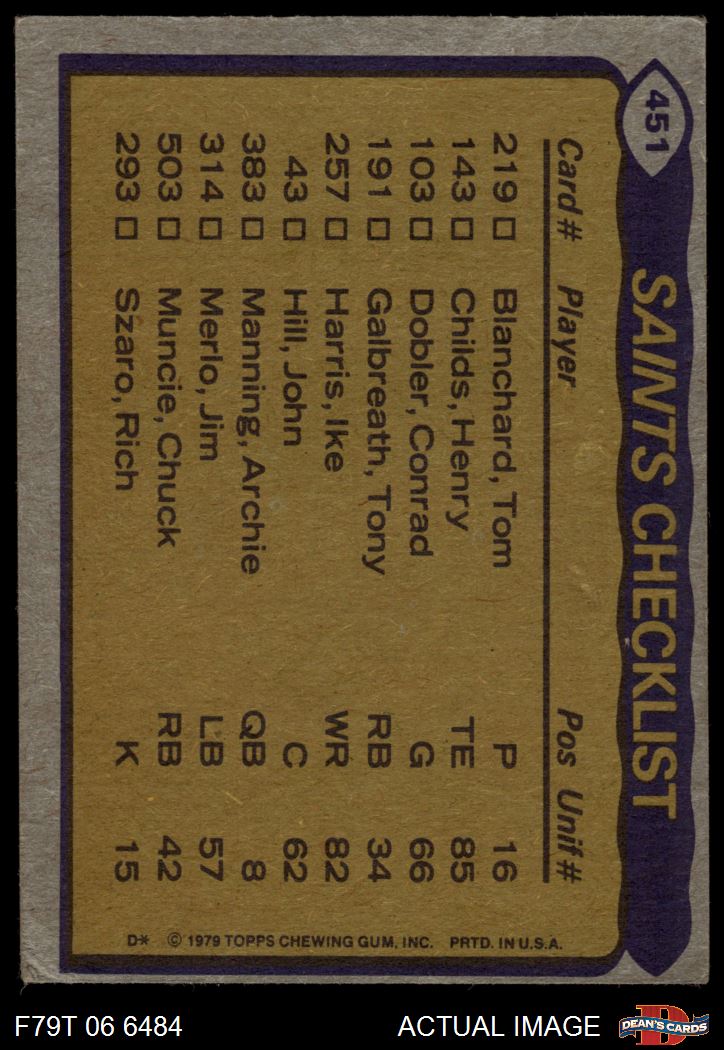 1979 Topps #451 - Tony Galbreath / Henry Childs / Tom Myers / Elex Price Saints Team Leaders & Checklist 2 - GOOD