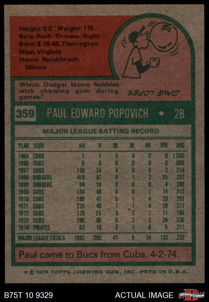 1975 Topps #359 Paul Popovich 6 - EX/MT