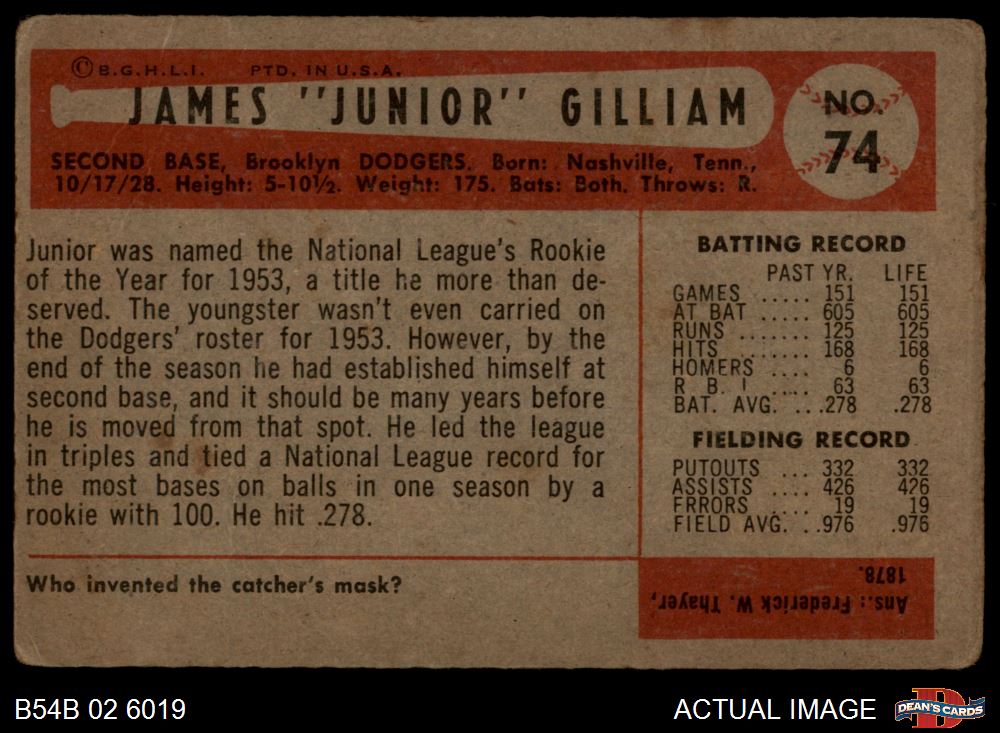 1954 Bowman #74 Jim Gilliam 1 - POOR
