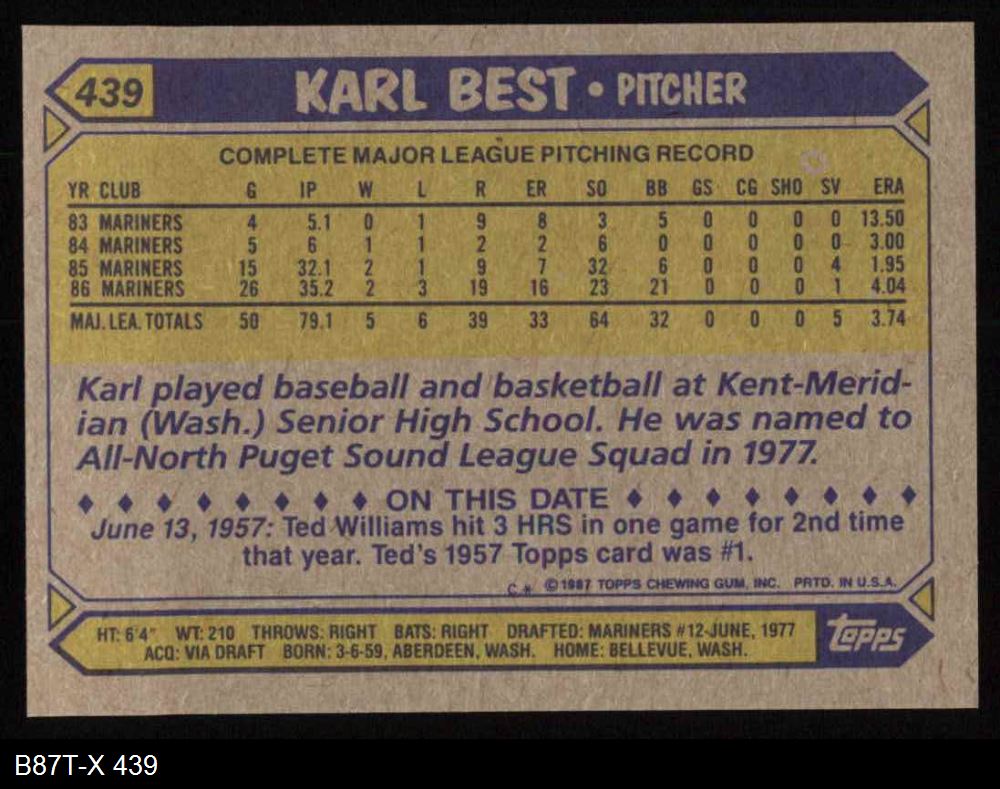 1987 Topps #439 Karl Best