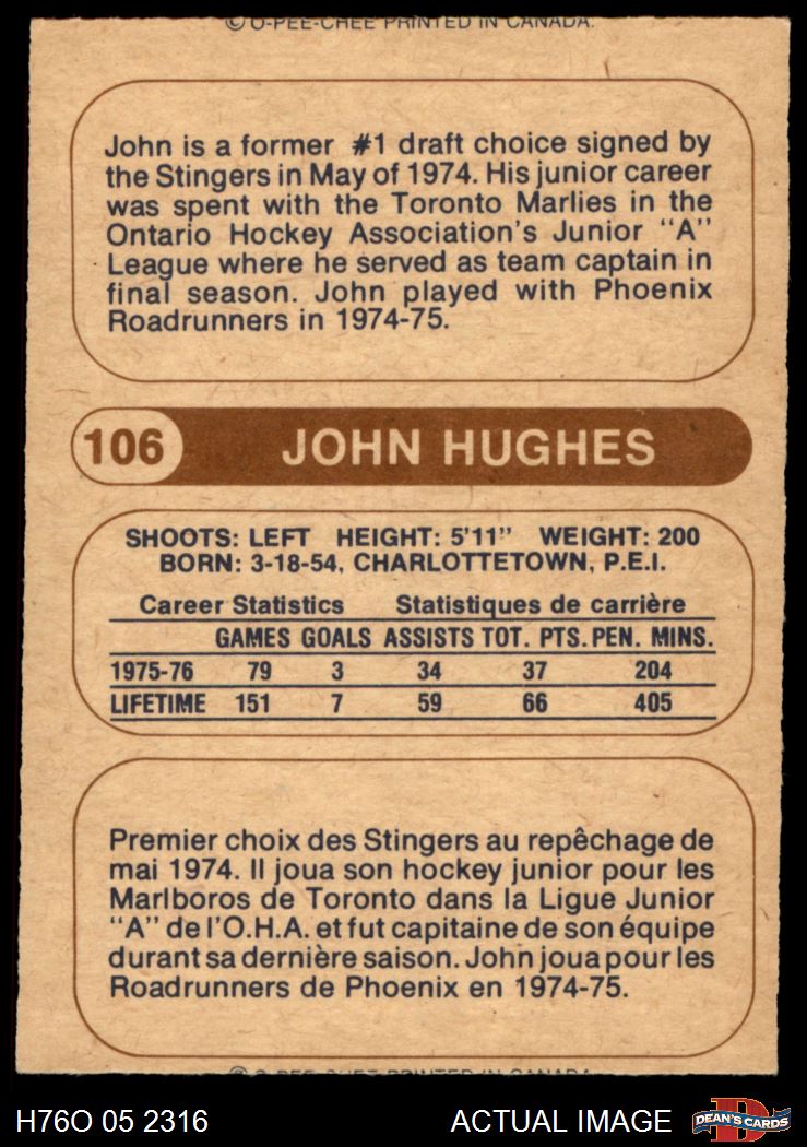 1976 O-Pee-Chee WHA #106 John Hughes 4 - VG/EX