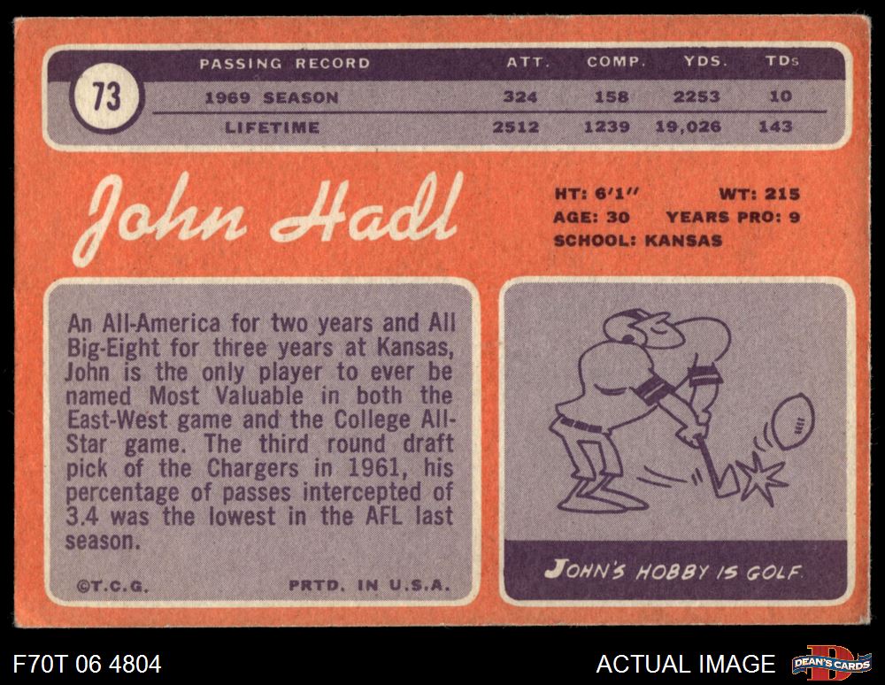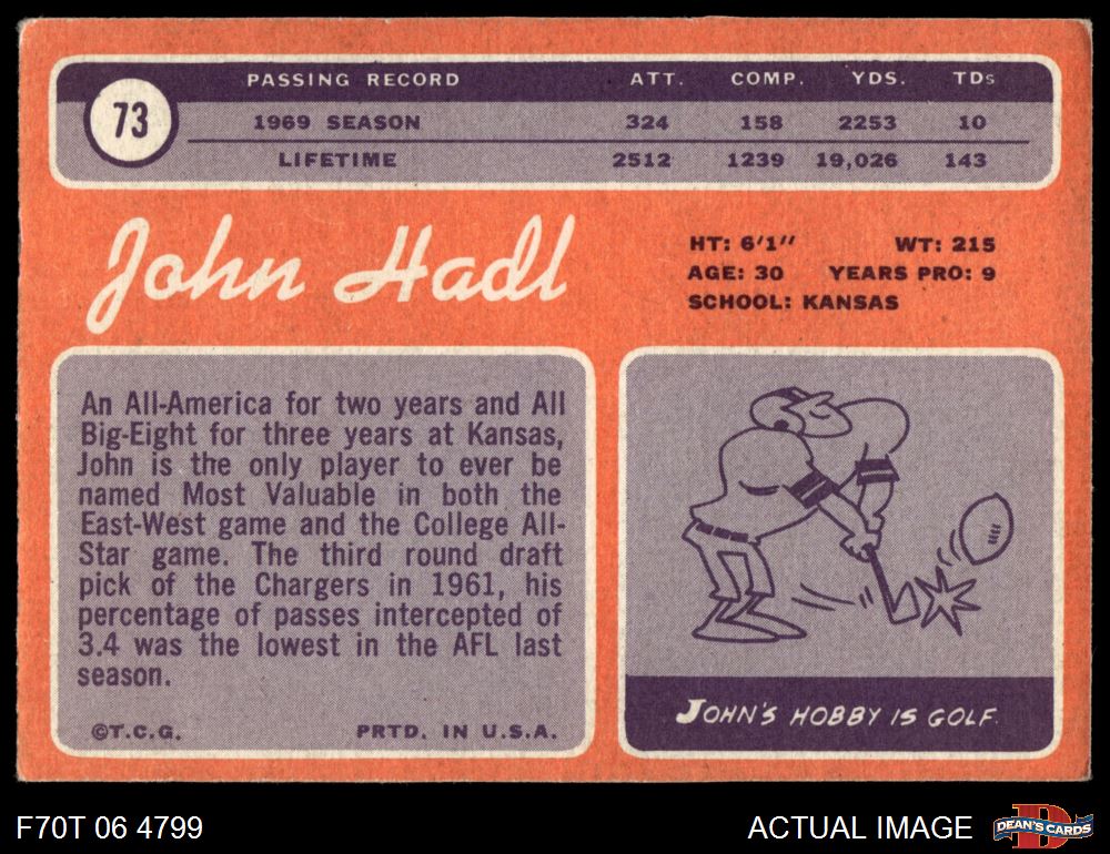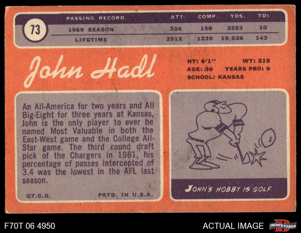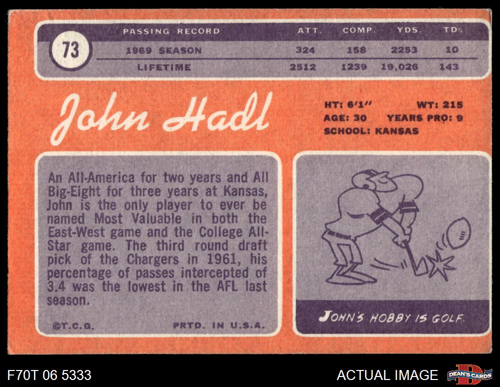 1970 Topps #73 John Hadl 3 - VG