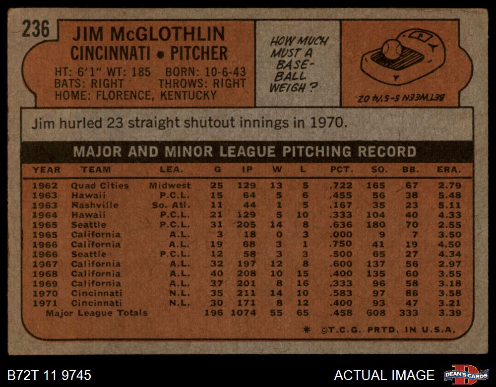 1972 Topps #236 Jim McGlothlin 1.5 - FAIR