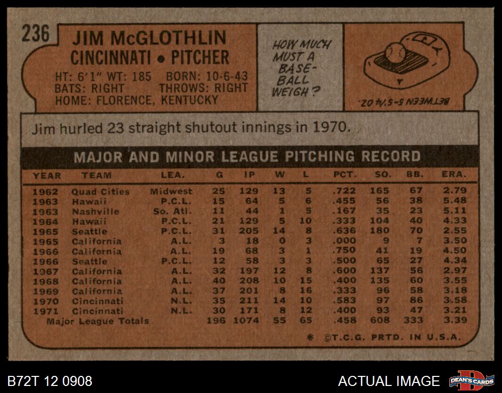 1972 Topps #236 Jim McGlothlin 6.5 - EX/MT+