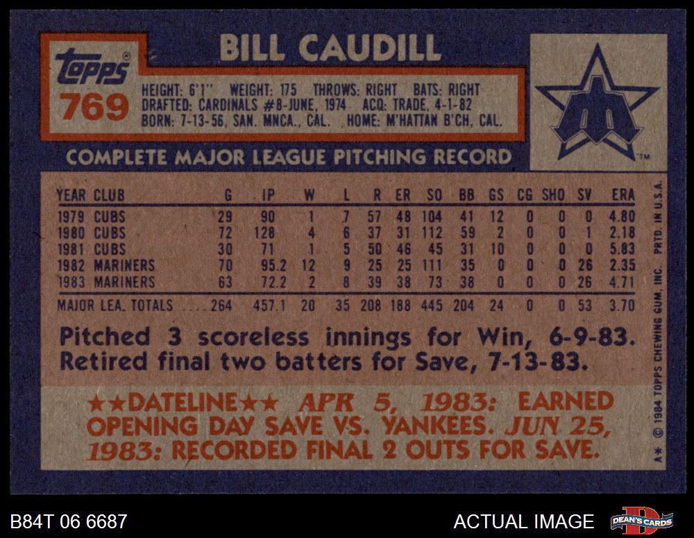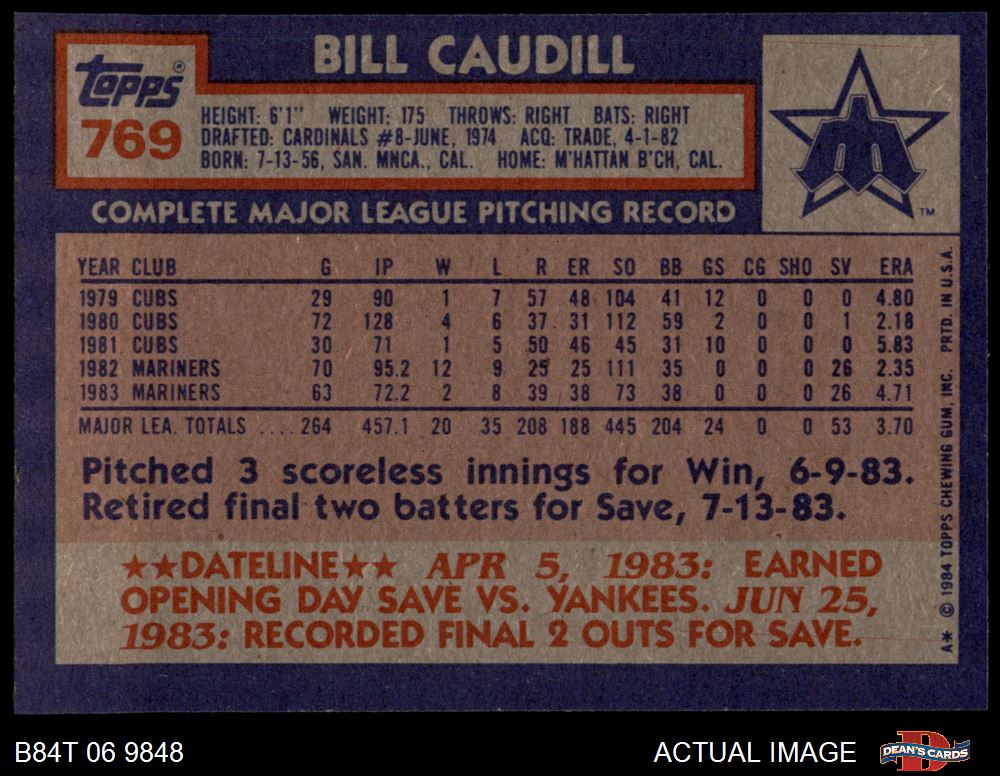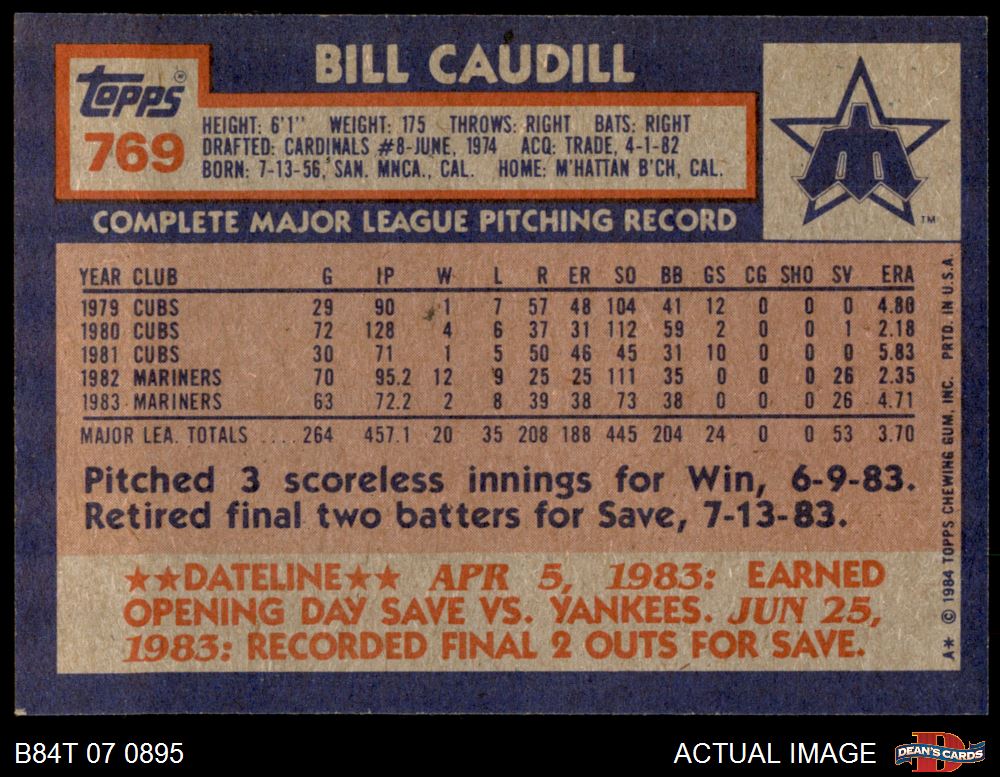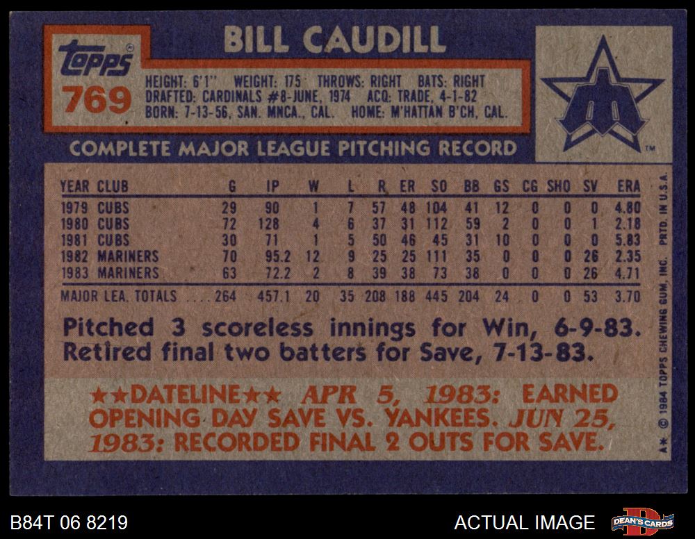 1984 Topps #769 Bill Caudill