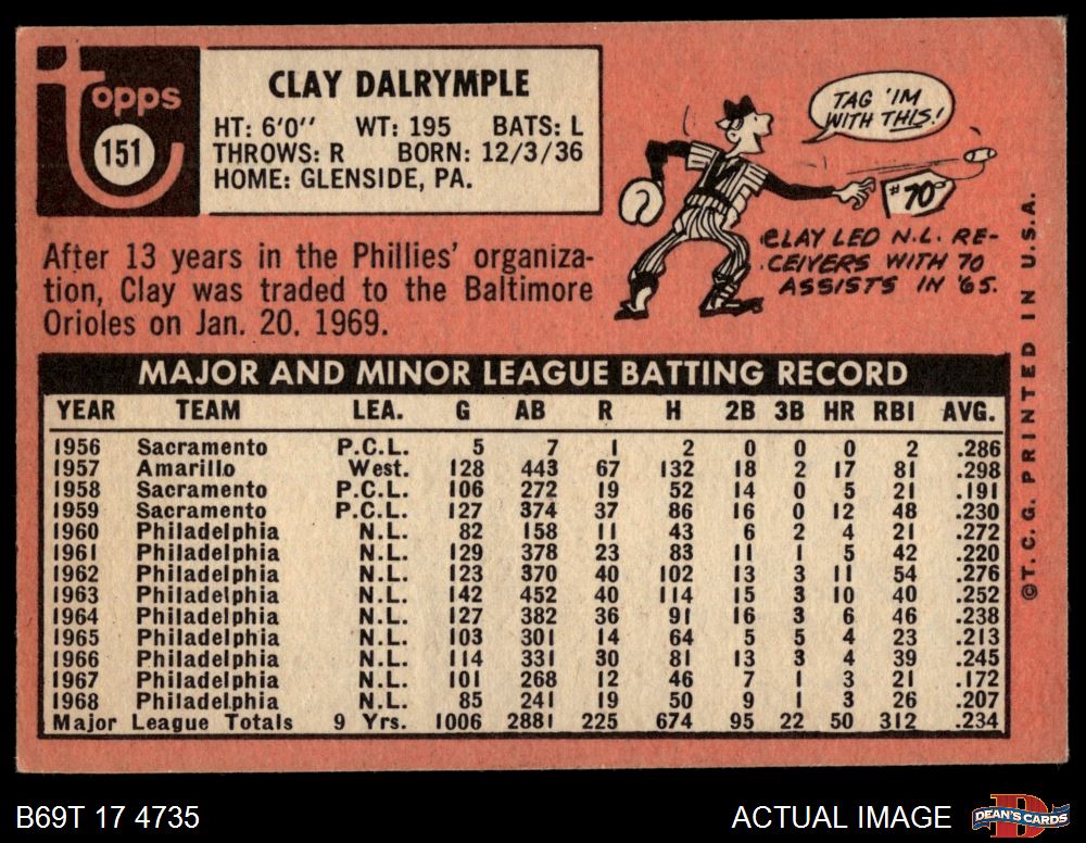 1969 Topps #151 BAL Clay Dalrymple 4 - VG/EX