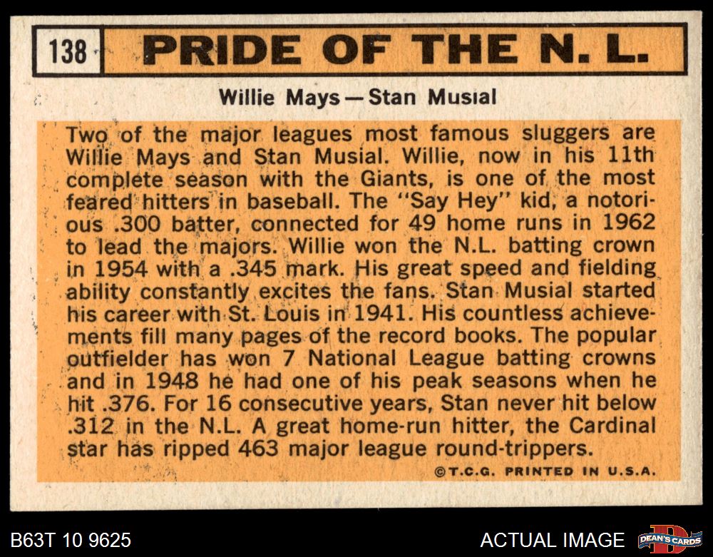 1963 Topps #138 - Willie Mays / Stan Musial Pride of NL 6 - EX/MT
