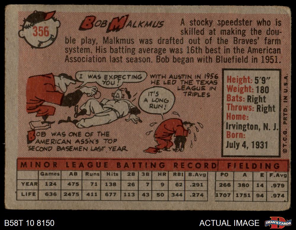 1958 Topps #356 Bobby Malkmus 1.5 - FAIR