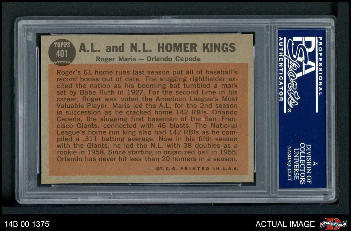 1962 Topps #401 - Roger Maris / Orlando Cepeda Homer Kings PSA 7 - NM