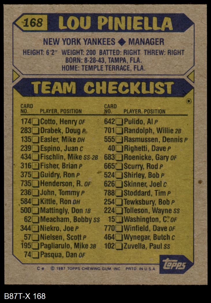 1987 Topps Baseball Cards (5,184 available)1987 Topps Yankees (271 available)