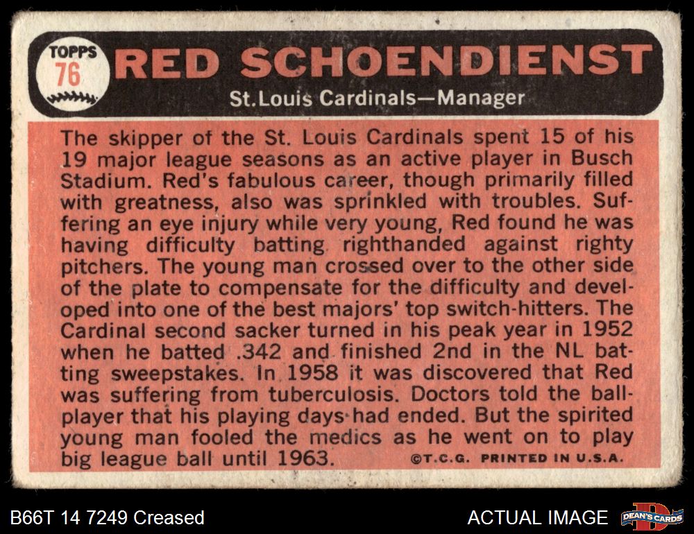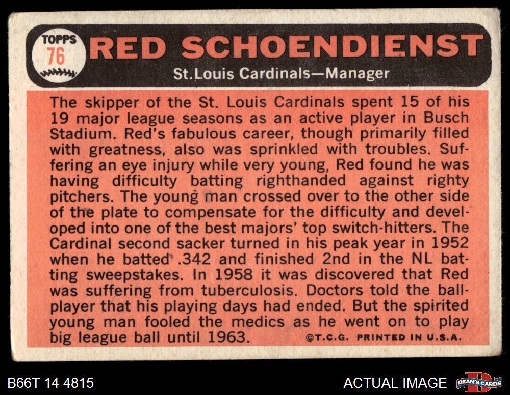 1966 Topps #76 Red Schoendienst 1 - POOR
