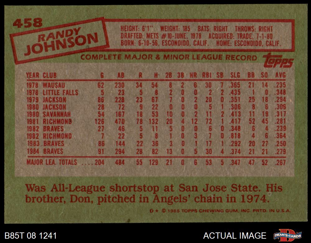 1985 Topps #458 Randy Johnson 7 - NM