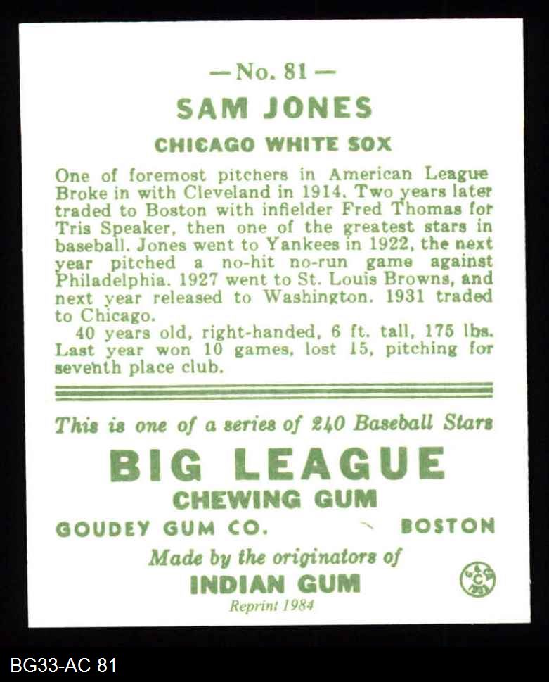 1933 Goudey Reprint #81 Sam Jones 8 - NM/MT