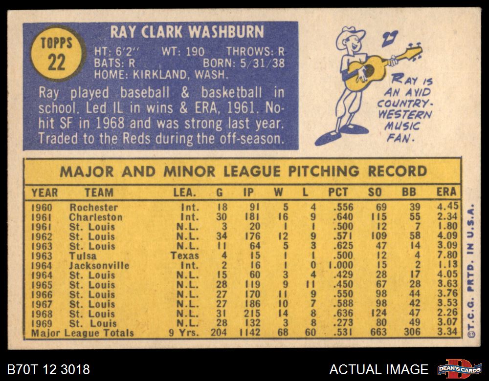 1970 Topps #22 Ray Washburn 5 - EX