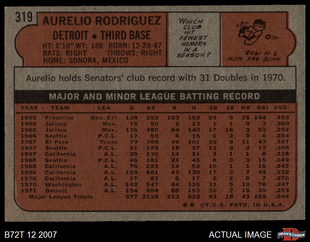 1972 Topps #319 Aurelio Rodriguez 5 - EX