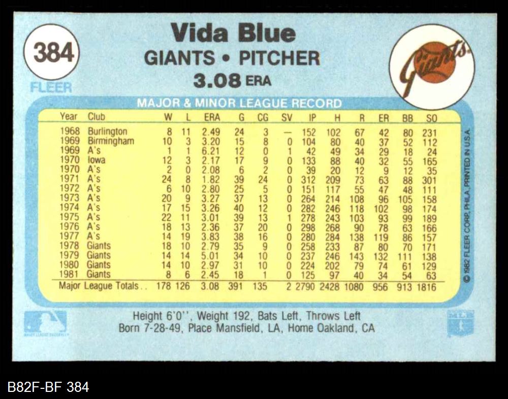 1982 Fleer #384 Vida Blue 8 - NM/MT
