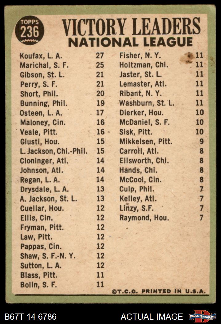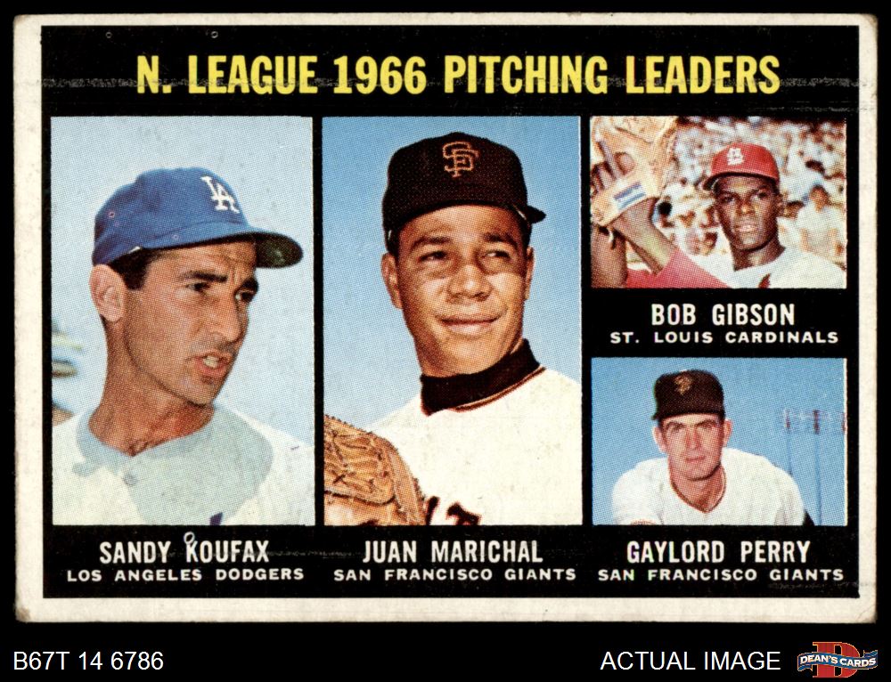 1967 Topps #236 - Bob Gibson / Sandy Koufax / Juan Marichal / Gaylord Perry NL Pitching Leaders 1.5 - FAIR