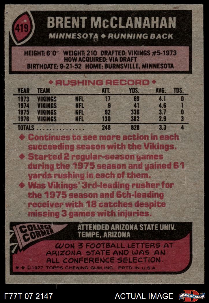 1977 Topps #419 Brent McClanahan 4 - VG/EX