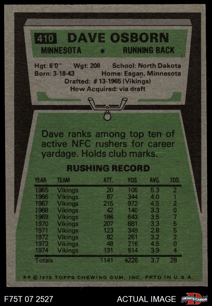 1975 Topps #410 Dave Osborn 7 - NM