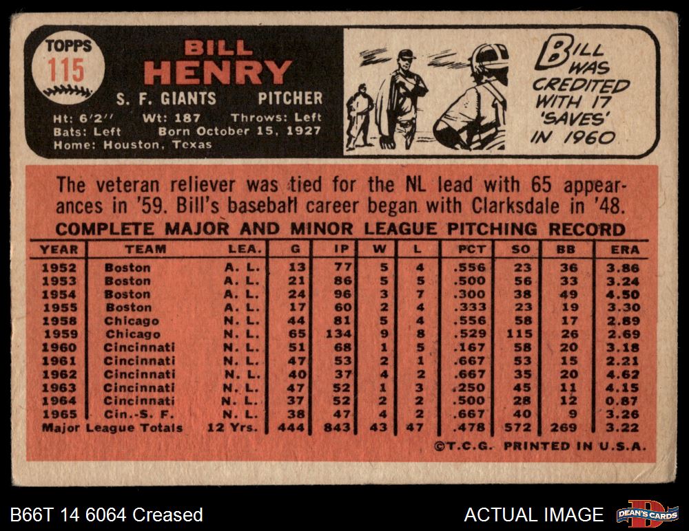 1966 Topps #115 Bill Henry 2 - GOOD