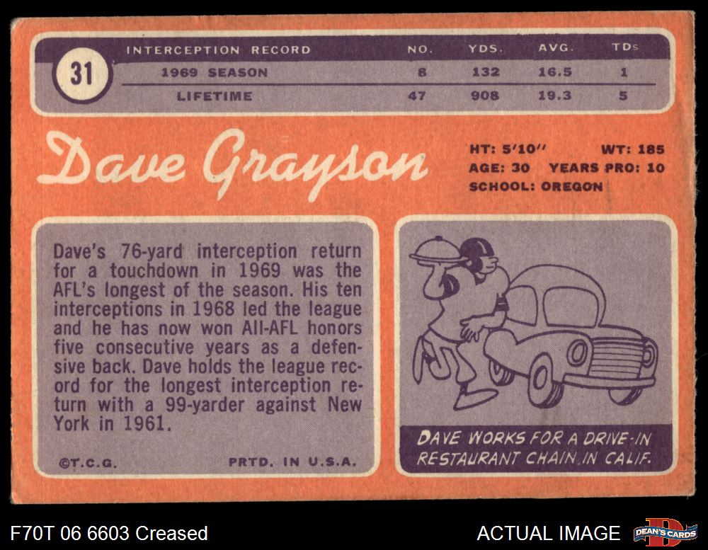 1970 Topps #31 Dave Grayson 2 - GOOD