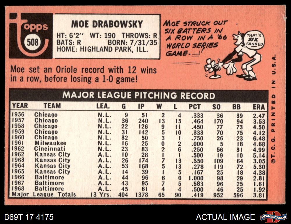 1969 Topps #508 Moe Drabowsky 4 - VG/EX