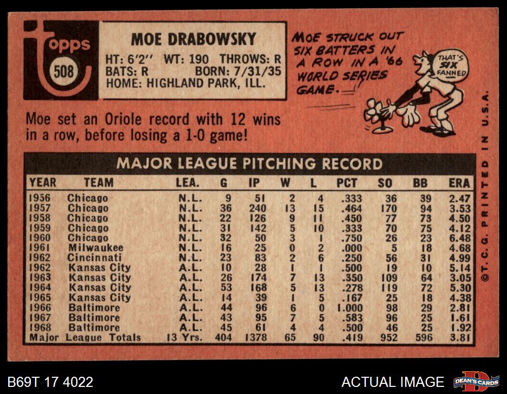 1969 Topps #508 Moe Drabowsky 5 - EX