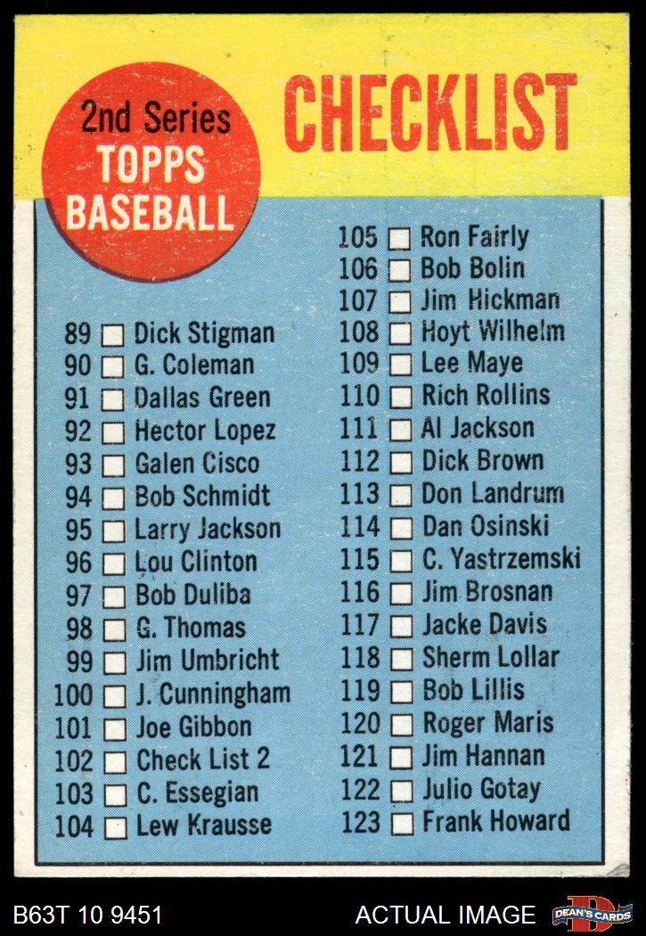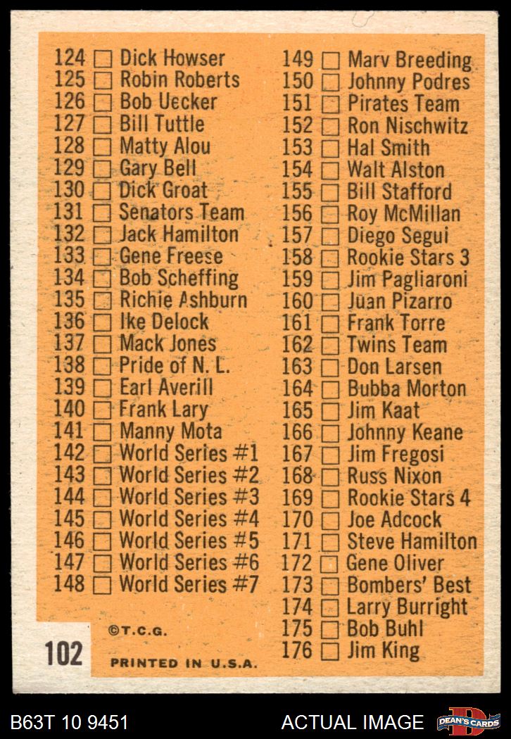 1963 Topps #102 RED Checklist 2 4 - VG/EX