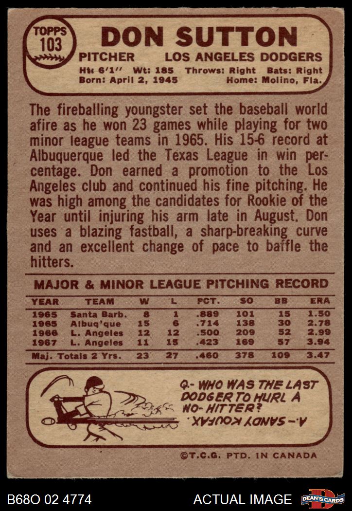 1968 O-Pee-Chee #103 Don Sutton 4 - VG/EX