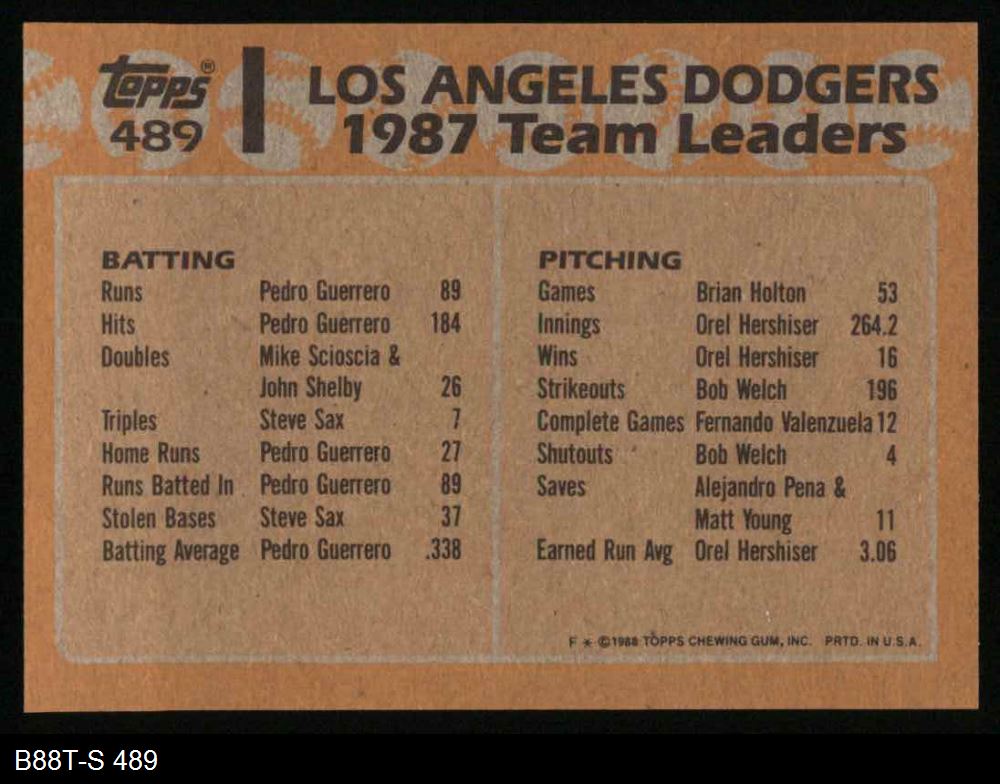 1988 Topps #489 Dodgers Leaders