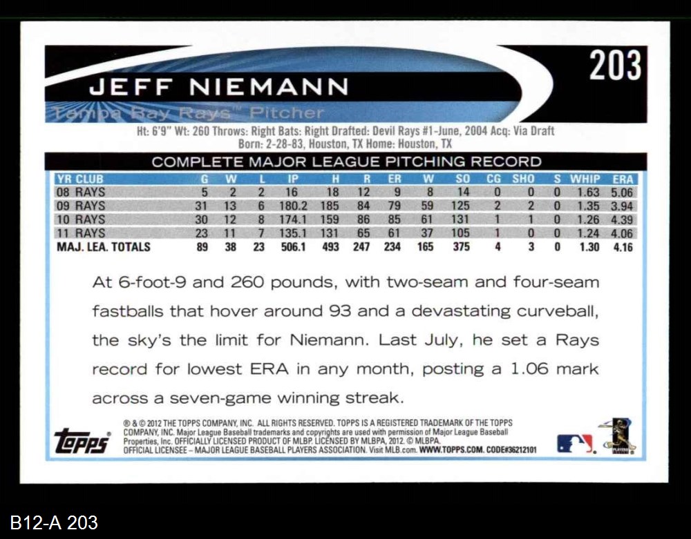2012 Topps #203 Jeff Niemann