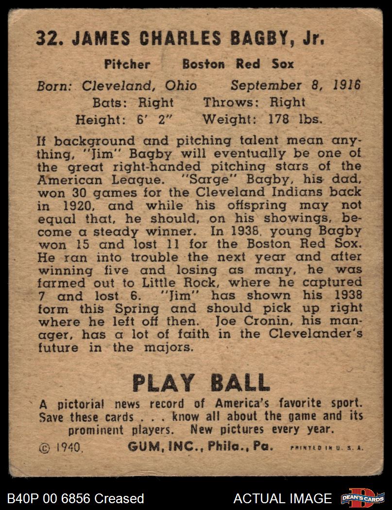 1940 Play Ball #32 Jim Bagby Front Thumbnail