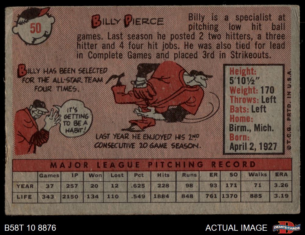 1958 Topps #50 YT Bill Pierce 1.5 - FAIR
