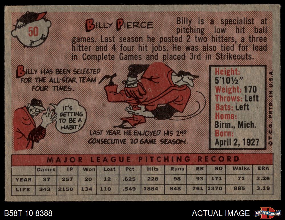 1958 Topps #50 YT Bill Pierce 3.5 - VG+