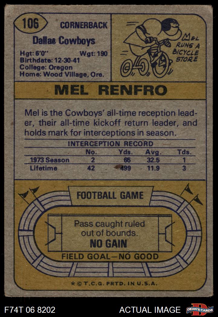 1974 Topps #106 Mel Renfro 2 - GOOD