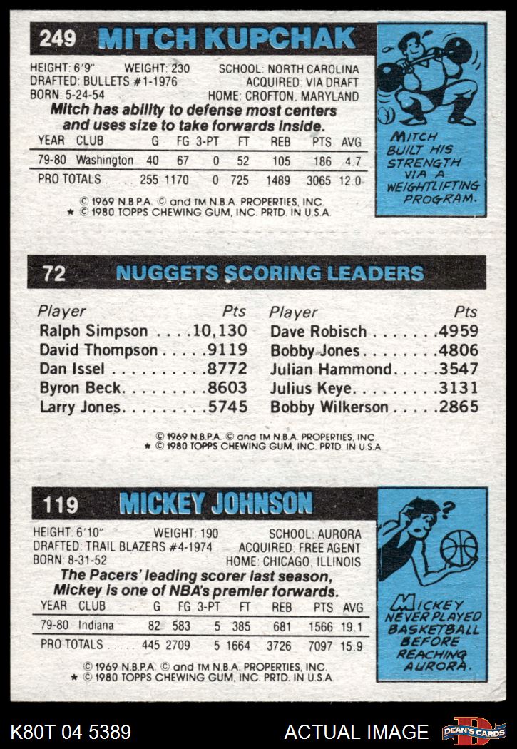 1980 Topps - Mickey Johnson / Dan Issel / Mitch Kupchak 119 / 72 / 249 5 - EX