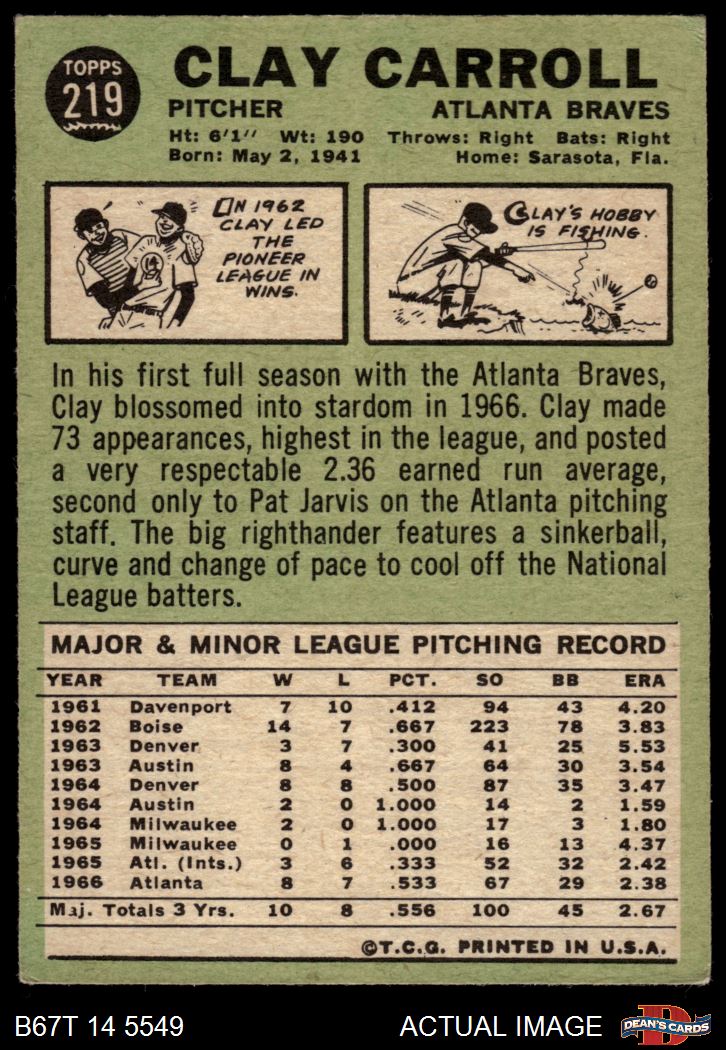 1967 Topps #219 Clay Carroll 4 - VG/EX