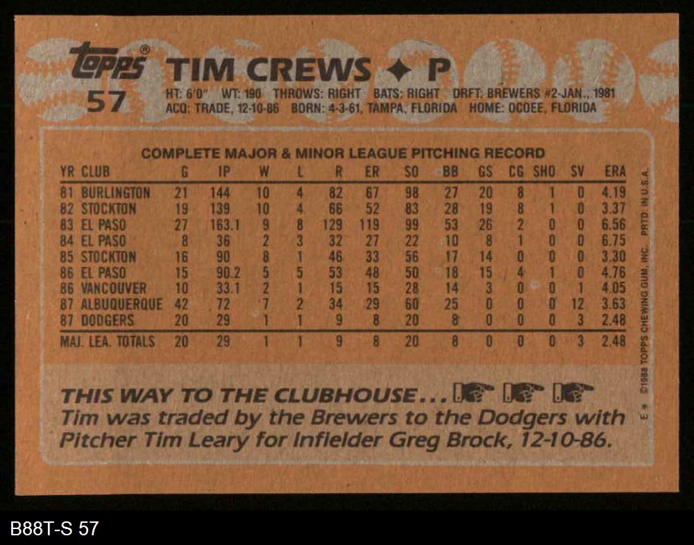 1988 Topps #57 Tim Crews